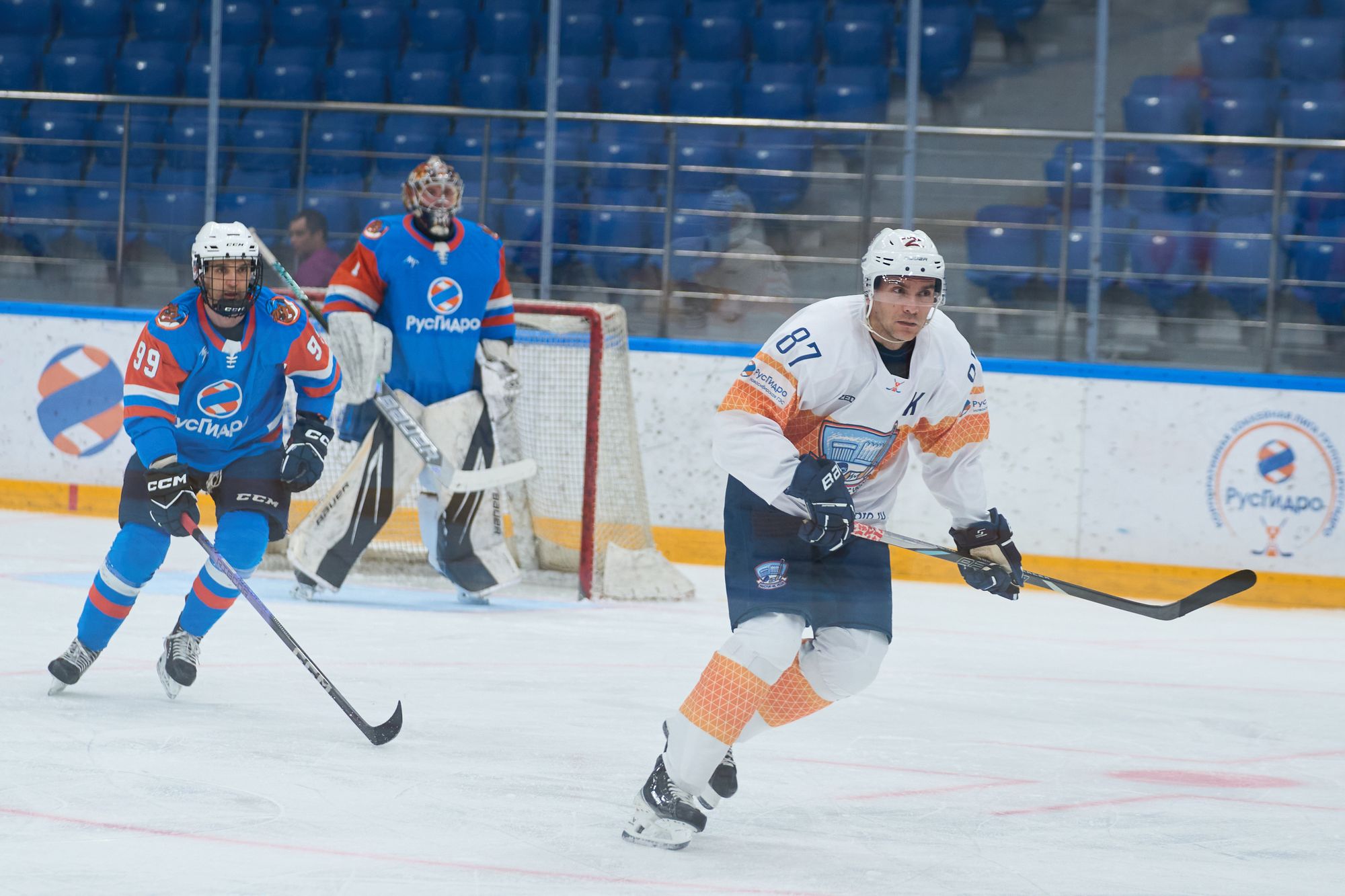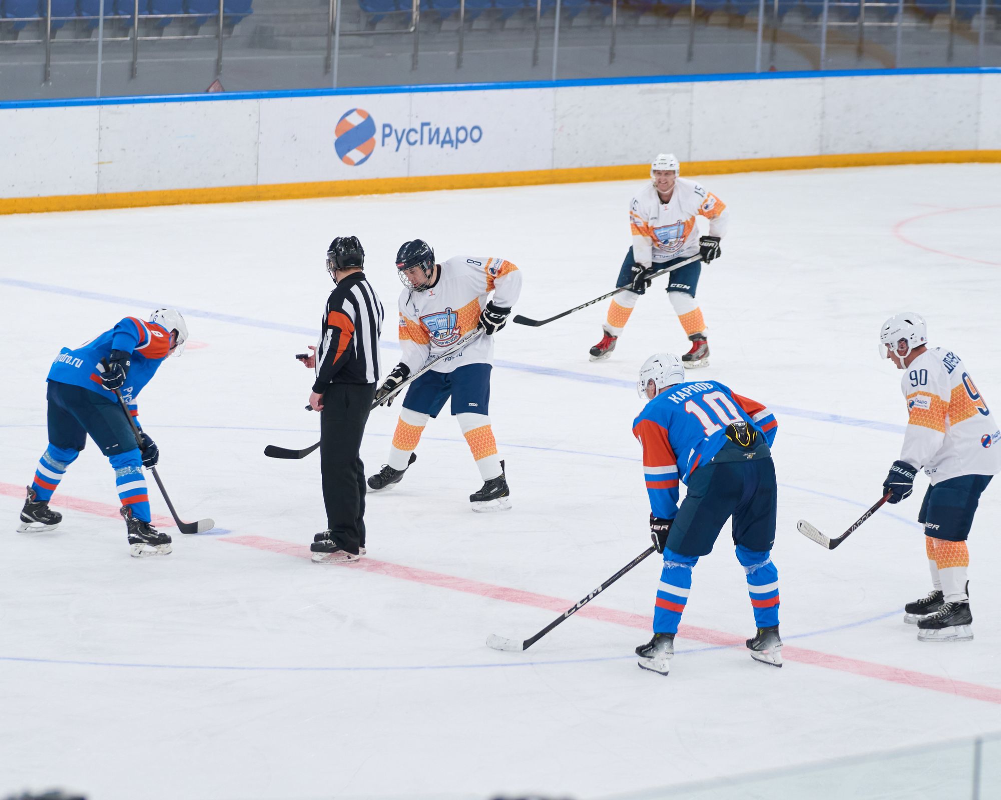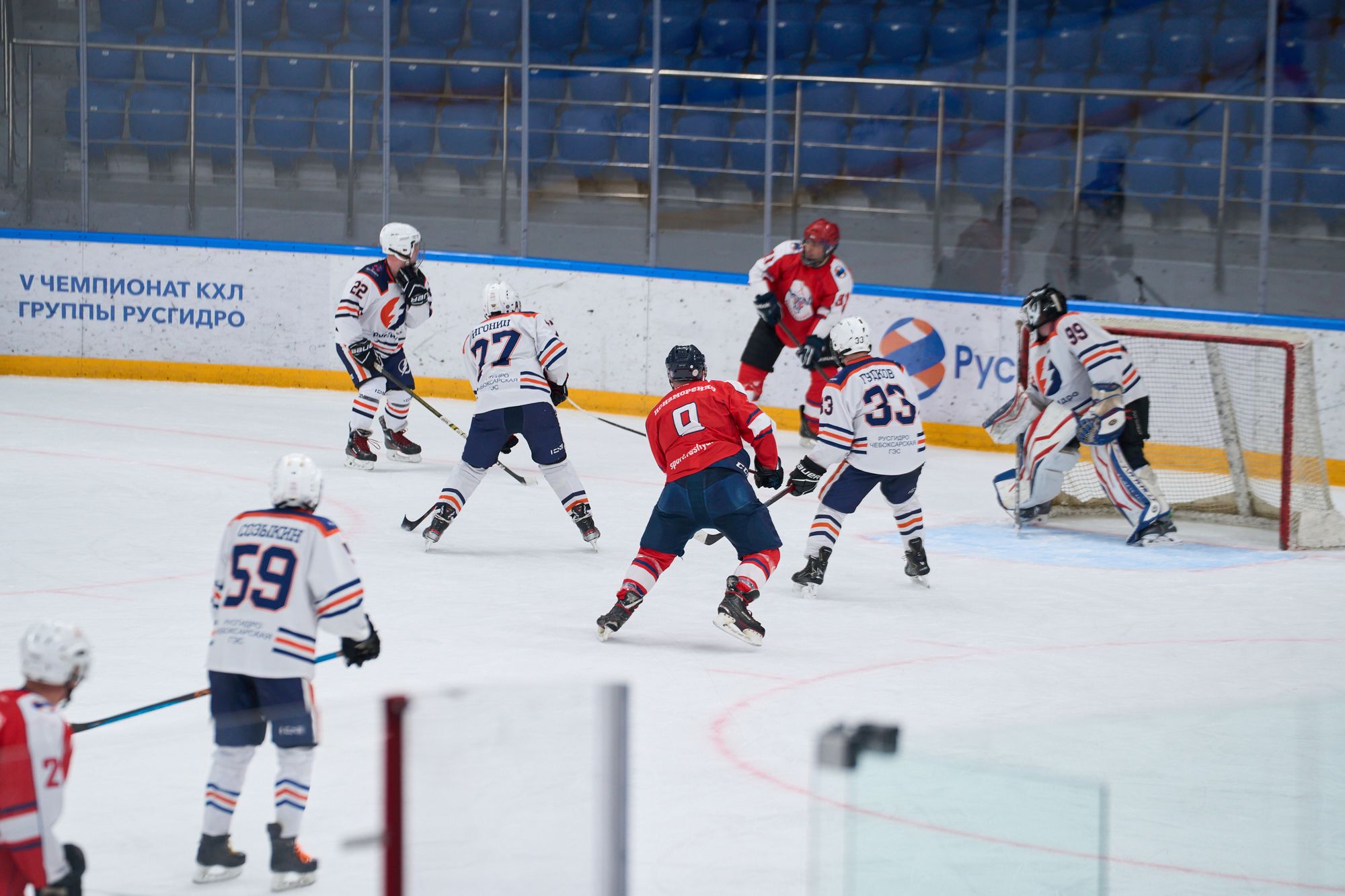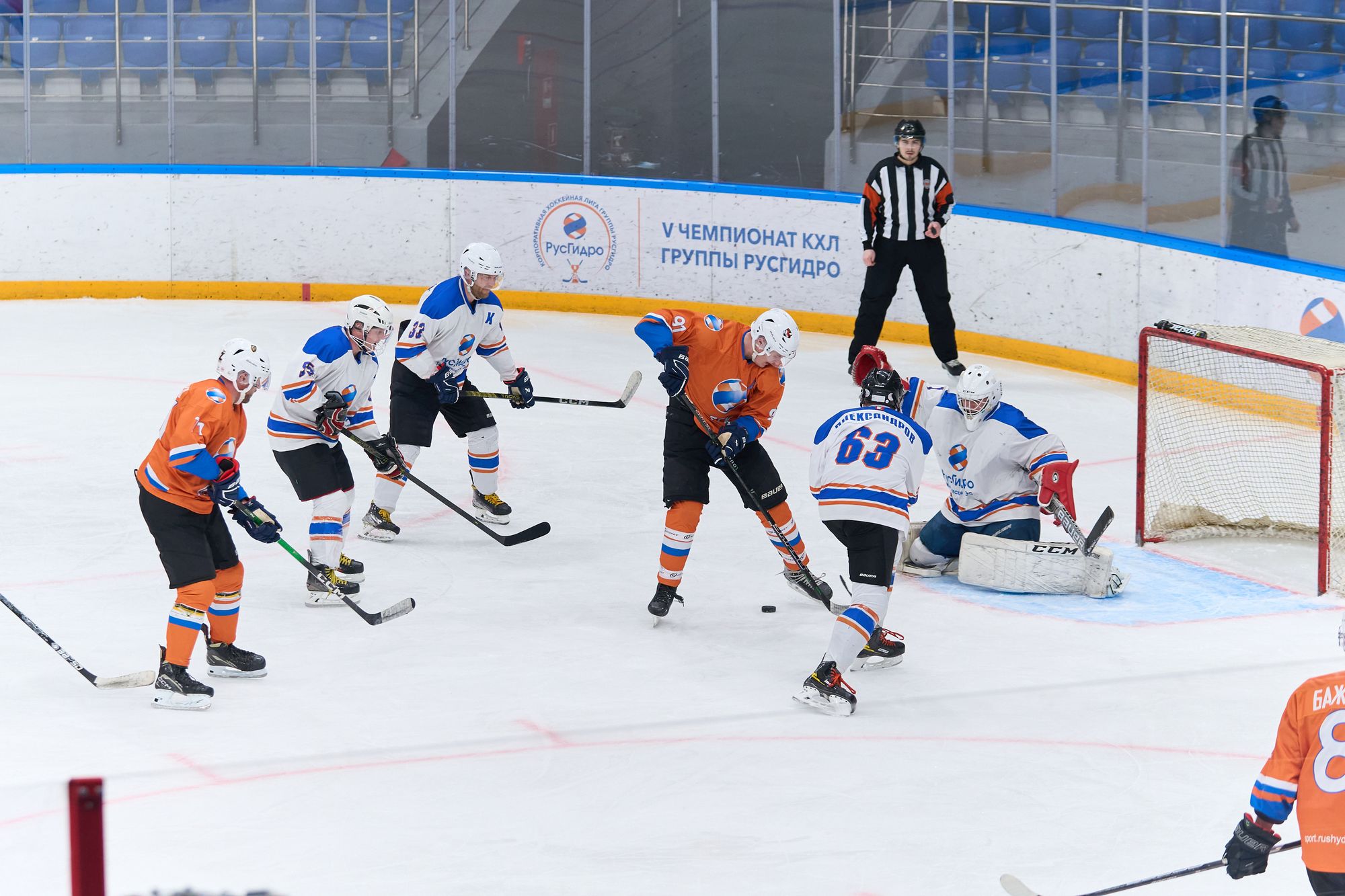 Завершал игровой день матч между сборной Исполнительного аппарата РусГидро и Саяно-Шушенским филиалом Гидроремонта-ВКК. Встреча получилась самой упорной: команды демонстрировали равную борьбу, а интрига сохранялась до финальной сирены. Победу со счётом 4:3 одержал Исполаппарат РусГидро. Команда из Исполнительного аппарата уверенно начала встречу: Олег Журавлёв оформил дубль, отличившись с передач Дмитрия Кукушкина и Анатолия Кондруха — 2:0. Однако соперники с СШФ ГР-ВКК сумели вернуться в игру: Николай Комар сократил отставание, а затем Рафаил Джавадов сравнял счёт — 2:2. Развязка наступила во втором периоде. Анатолий Кондрух из Исполнительного аппарата вновь вывел свою команду вперёд, а в третьем периоде Андрей Карпов увеличил преимущество — 4:2. Команда с СШФ ГР-ВКК до конца сохраняла интригу: Алексей Чудинов сократил отставание до минимума, но на большее времени уже не хватило.